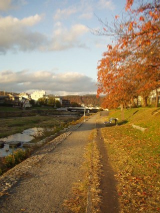 北大路から今出川の間の高野川沿いの風景。 高野川は今出川で賀茂川と合流して鴨川になります。