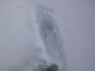 足跡。けっこう深く見える。どれくらいなのかといえば、