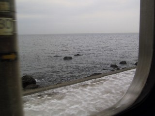 小樽駅を出てしばらくしたらこんな景色。 すぐそこに海が見えます。 しかも反対側はすぐ山(崖)です。 すごいところを通ってるなあと、1日目小樽に行くときも思いました。 これ以降はもう写真を撮るところはなかったです。 観光、買い物、スキーといろいろできてとても楽しい旅行でした。